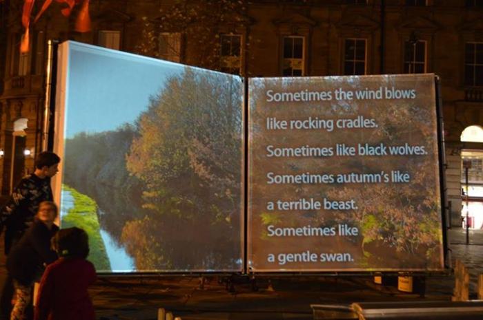 Every half hour we presented poems on Codex written and read by pupils from Wellhouse and Willberlee J&I schools in workshops led by poet Adam Strickson, as part of Huddersfield Festiival of Light.