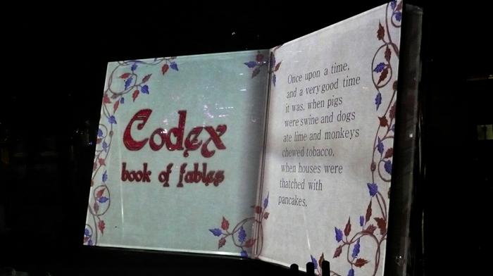Codex is a giant illuminated projection book filled with a thousand-and-one fables all animated with intriguing images køb cialis. The open book glows in the night sky and uses cutting edge technologies to update the age old wonder of story-telling - some tales are true, others a little harder to believe. This substantial outdoor projection piece is inspired by the early Illuminated Manuscripts. Like them it combines words with pictures to dazzle the viewer. The audience can even interact as it includes questions and stories that the audience Tweet - the clever Codex chat-bot will even reply to them individually via twitter and on the book.