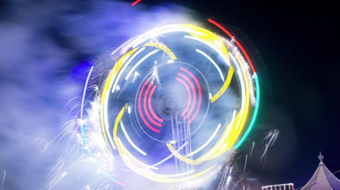 The Momentum Wheel : A giant 8m tall catherine wheel lighting effect