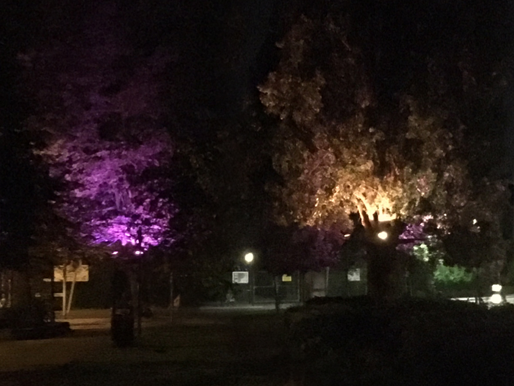 Selected trees will illuminate with rippling colour effects using colour changing LED floodlights. These will respond to peoples movements through a radio connected network of sensors that respond to peoples movements along the path.