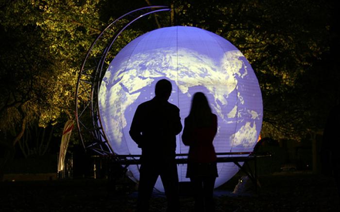 Lightweight is a 360˚ projection globe that invites audiences to have their picture mapped into live animations that swarm around the globe alongside movies, audio, graphic effects, pictures, text and even Tweets. The four metre high sphere is lit with colour and images creating a unique and interactive experience. “Magical and mesmerising…almost hypnotic”.