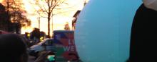 A four metre high inflated sphere lit with intense translucent colours, projected video images, animations and visual effects that spin magically around the outside of the globe enhanced by multi-channel music from hidden speakers.