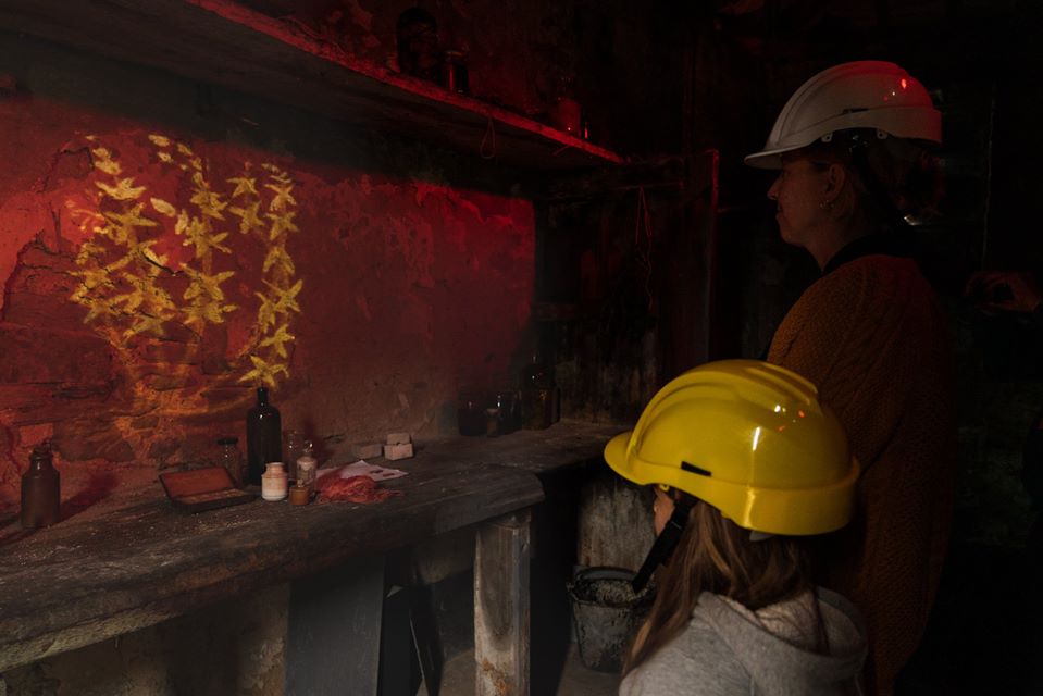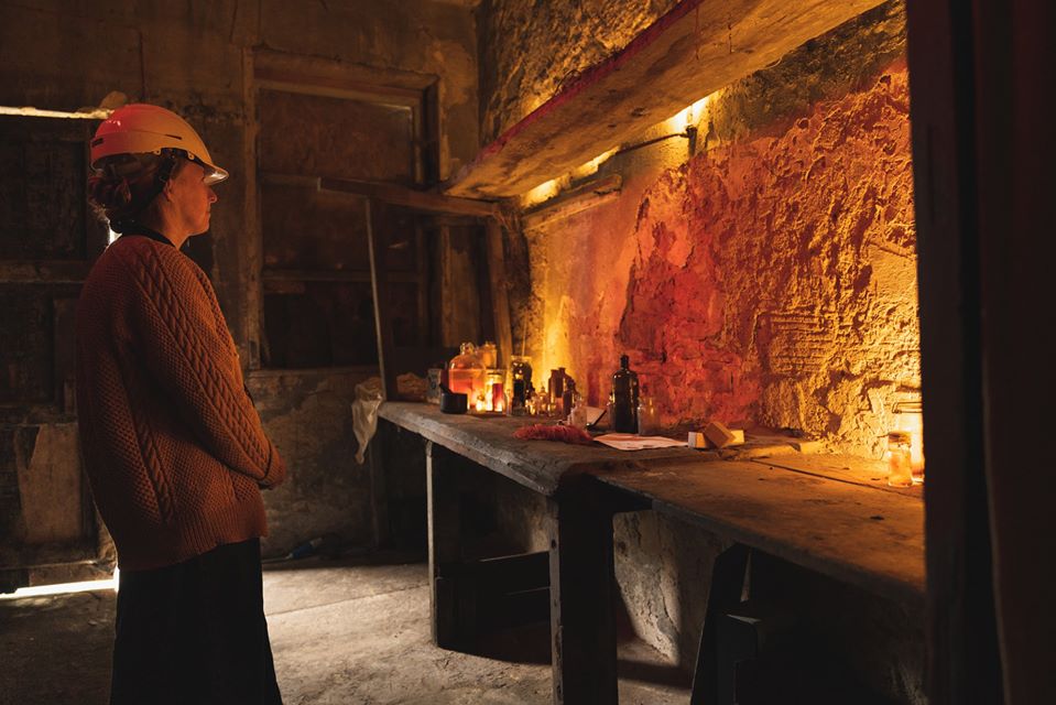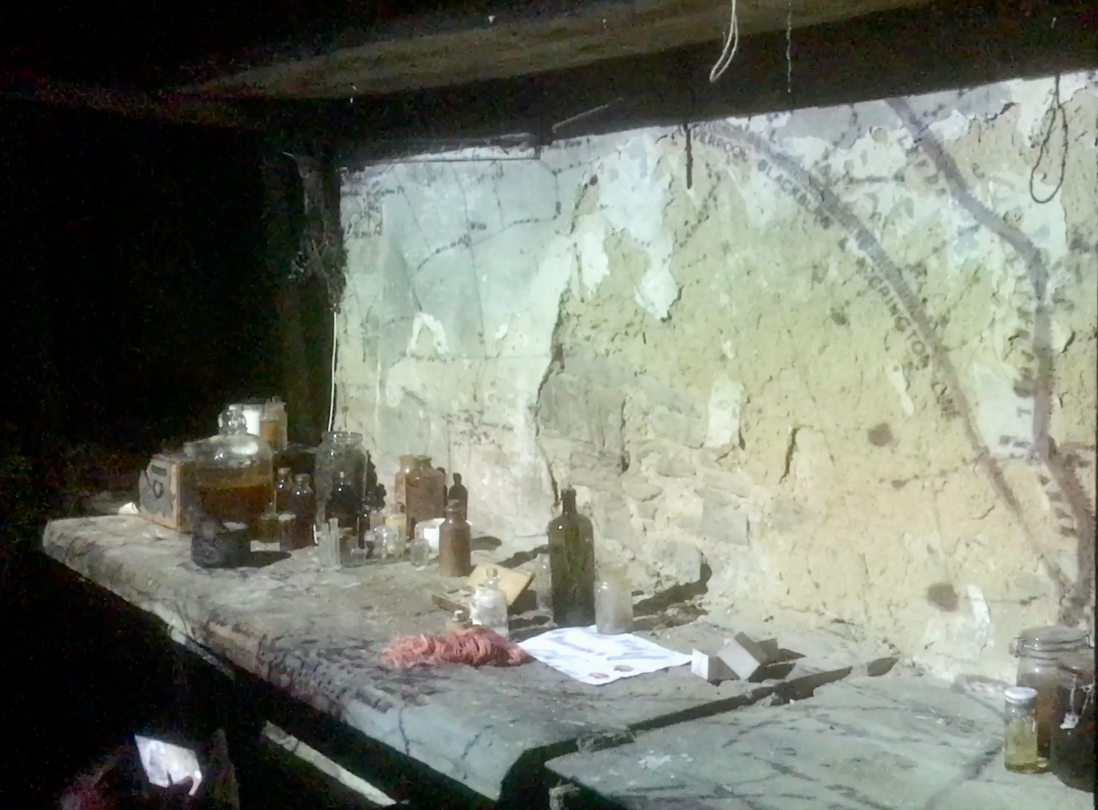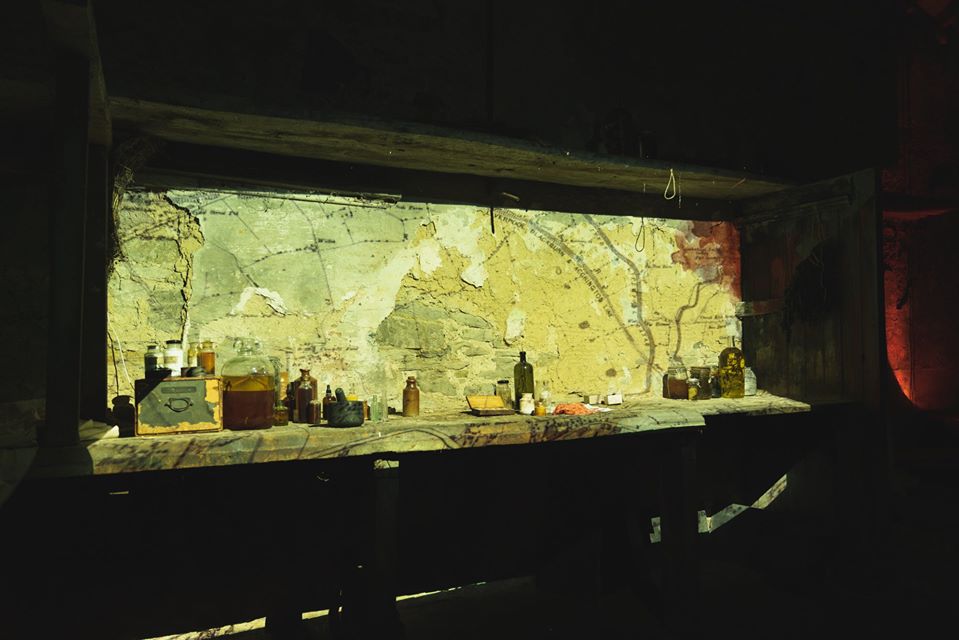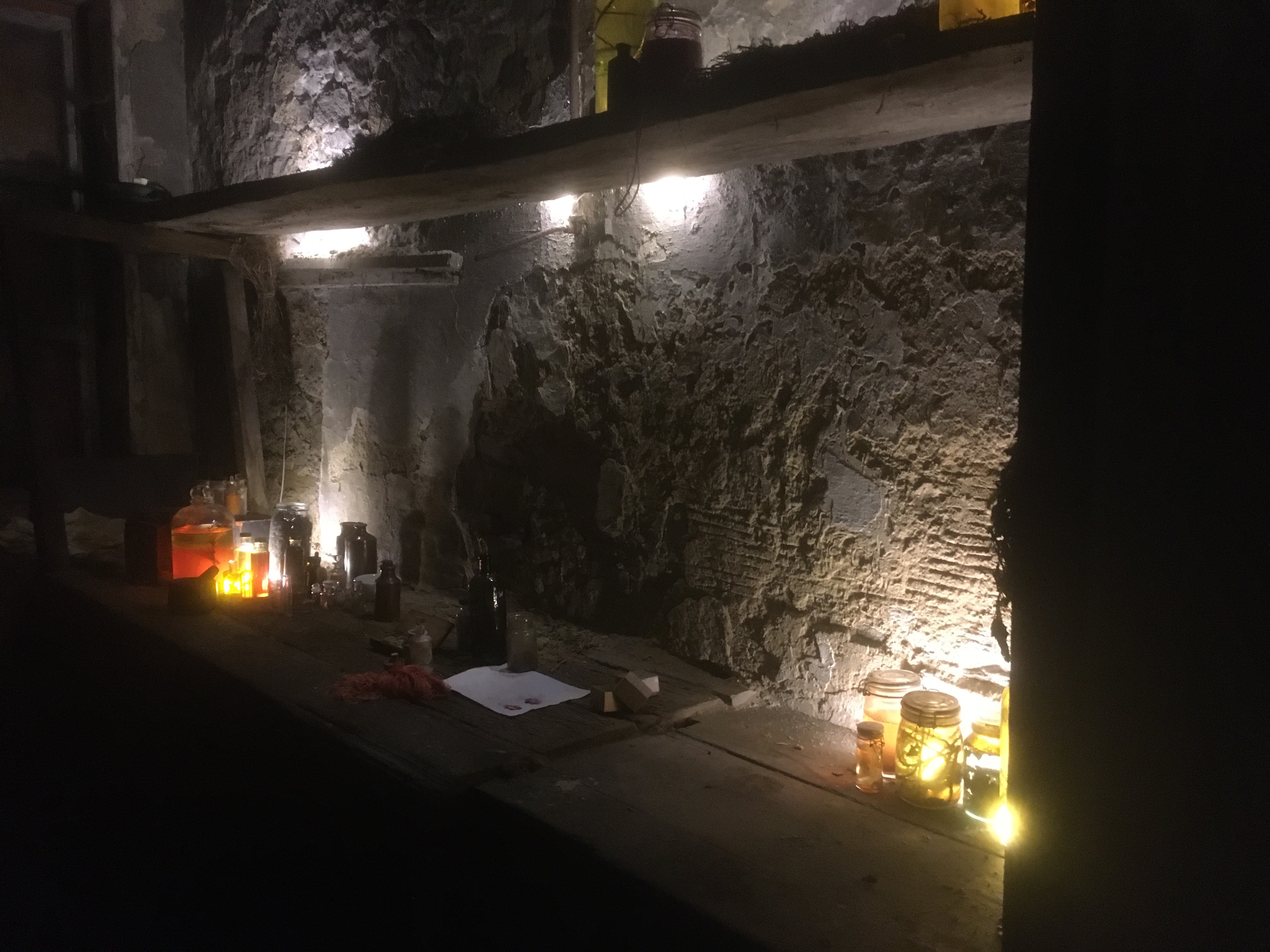 " ... the dilapidated brick building .... reanimated using video projections, atmospheric lighting, glass vials and audio effects.
