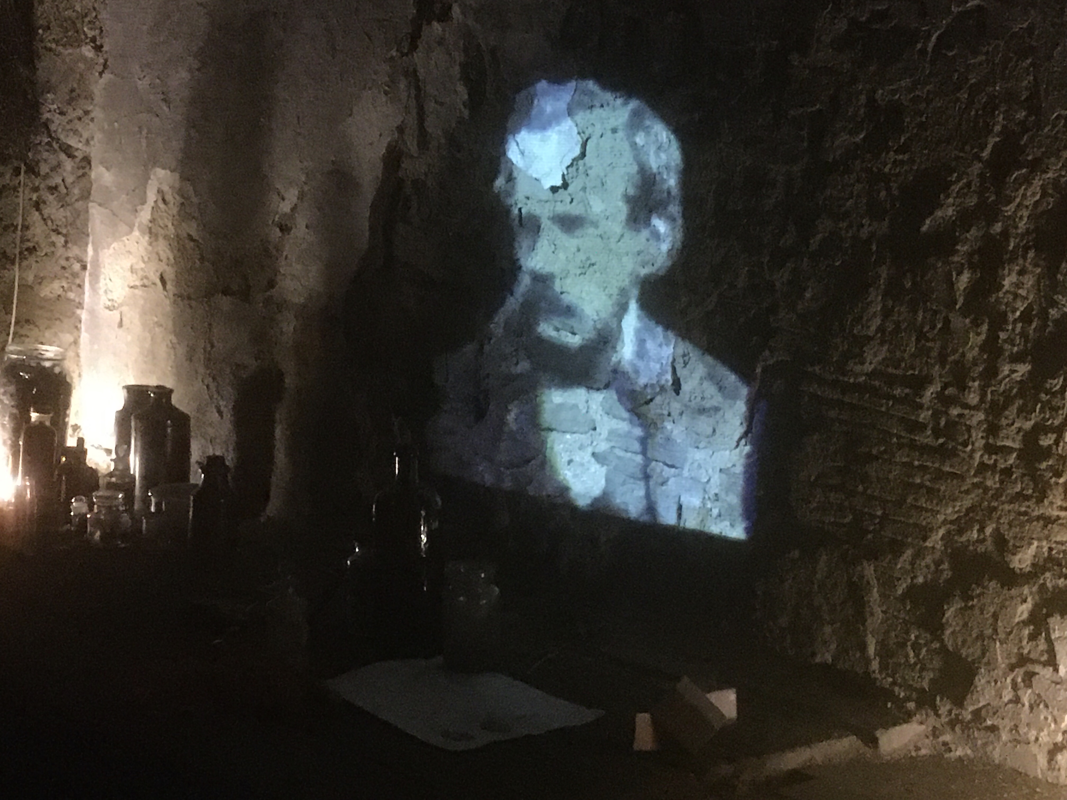 Featuring projected images, animation and lighting effects cast onto the raw walls of the shed, with recorded readings with sound and other effects, to create and resonant experience for visitors.