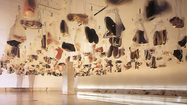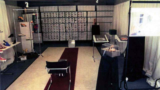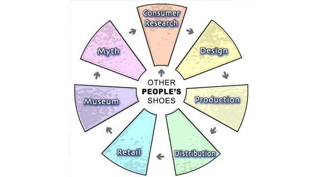 ....shoes are a designer's life-style dream and a factory worker's mass product, a customers second skin and personality display and a museum curator's artifact of cultural anthropology. These different viewpoints are explored in a variety of appropriate locations and formats through a carefully structured modular process