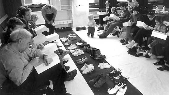 Consumer Research sessions in Community Centres in shoe producing areas of Rawtenstall, Dewsbury and Leicester. The sessions explored memories and aspirations In collaboration with Those Environmental Artists.