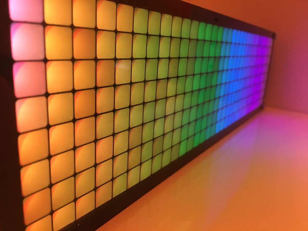 The sensors are connected to a bespoke animation algorithm that draws on real-time data. Pedestrian movement, speed and direction feed into live animation software to create an ever changing light and colour effect that is ulimately controlled by anyone passing along the path.